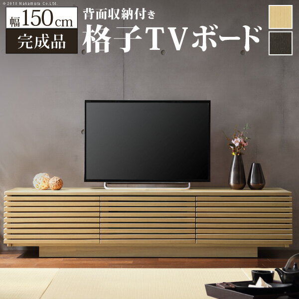 テレビ台 ローボード 150 完成品 背面収納付き格子TVボード 〔サルト〕 幅150cm リビング収納 AVボード フルオープンレール(代引不可)【ポイント10倍】【inte_D1806】