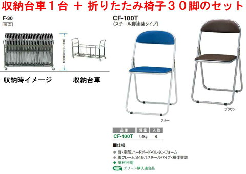 折りたたみパイプ椅子30脚+収納台車のセット 【 選べる張地カラー 全2色 ウレタンレザー張り 】 【 スチール脚塗装タイプ 】 一部組立家具 TOKIOチェア